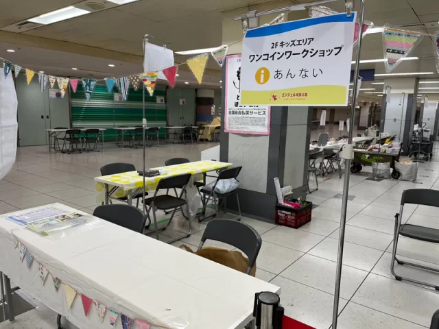 昨年に引き続き、2階キッズフロアでワンコインワークショップを担当させていただきました。