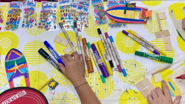 エンジェルすまいるブースは『ボートの街 戸田』を推すために「クラフトボート作り」をやりました。小さい子から好きな色や絵を描いて、オリジナリティあふれる作品を作ってくれました。これは実際に水の中で動くんですよ♪遊んでくれたかな?
